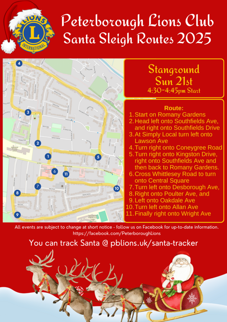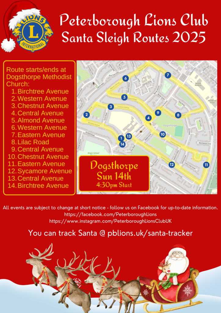 Going to miss us? If you email santa@peterboroughlions.org.uk we’ll make sure your email is passed on to Santa. So if you have any questions, or want to tell him what you want for Christmas, or just want to say “Hi”, drop him a line!